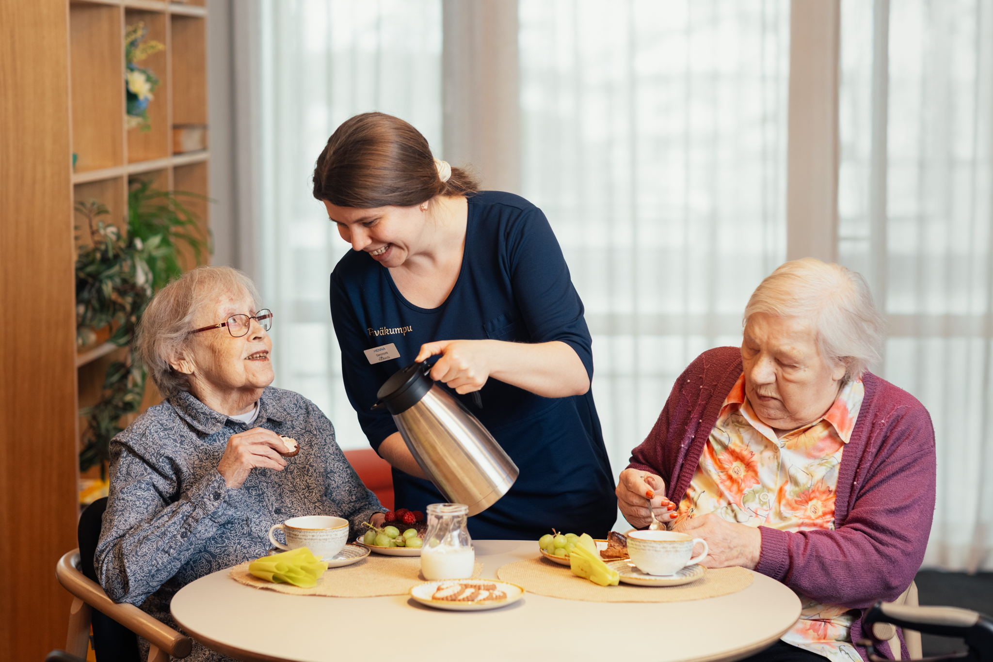 Kun kotona ei enää yksin pärjää, hoitokodissa on hoivaa ja turvaa ympäri vuorokauden. Elämänilosta kertovia ilonryppyjä lisää erityisesti se, että meillä saa halutessaan olla sekä oman huoneen rauhassa että yhdessä muiden seurassa.