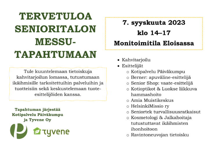 Tapahtuman järjestää Kotipalvelu Päiväkumpu ja Tyvene Oy.