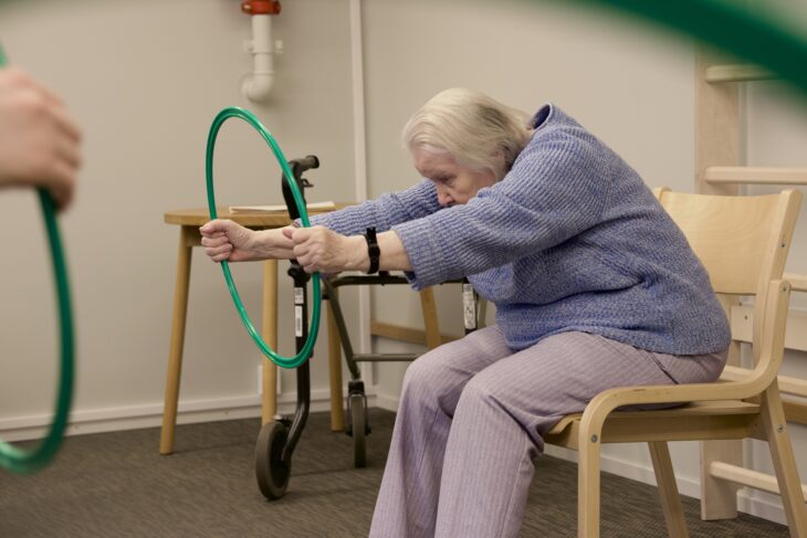 Ryhmäliikunta on hoivakodin asukkaille yleensä mieluinen liikuntamuoto. Yhdessä liikkuminen vahvistaa myös kognitiivista, psyykkistä ja sosiaalista toimintakykyä (Mikkolainen & Immonen 2019). Villa Vuorannassa fysioterapeutin vetämät ryhmäjumpat ovat kovin tykättyjä.