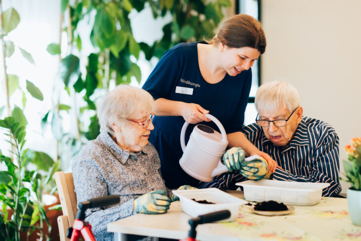 ”Osallisuus ei tarkoita vain osallistumista yhteisiin tapahtumiin, vaan sitä, että ihminen saa jatkaa itselleen tärkeitä rutiineja ja päättää omista asioistaan. Toiselle se voi olla aamukahvin keittäminen itselle, toiselle pihalla käyminen tai osallistuminen lukupiiriin. Tärkeintä on, että jokaisella on mahdollisuus elää omannäköistä elämää hoivakodissakin,” Henna kertoo.