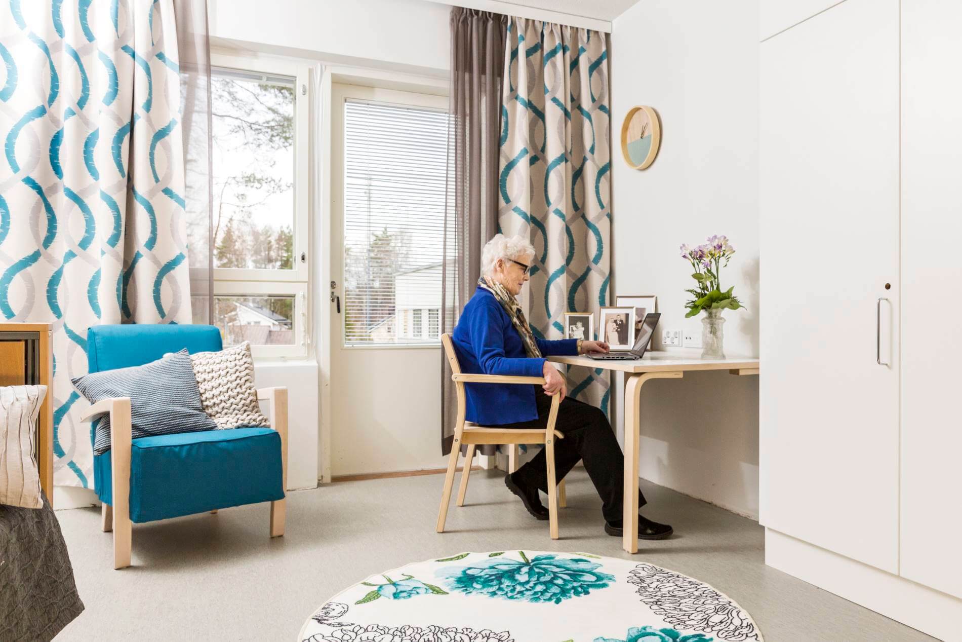 Asukashuoneet ovat yhden hengen huoneita, joissa on omat kylpyhuone- ja wc-tilat. Yhteiset tilat on sisustettu kodikkaasti ja viihtyisästi perinteitä vaalien. Jokainen asukas voi halutessaan sisustaa oman huoneensa omilla tutuilla huonekaluillaan ja tavaroillaan. Valoisa viherhuone, pitkä terassi, esteetön piha ja saunatilat ovat asukkaiden ahkerassa käytössä.