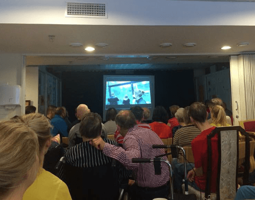 Saimme kesäkuussa Hoitokoti Päiväkummun Itä-Pasilassa mahdollisuuden myös seurata noin 50 asukkaan ja hoitajan kanssa suorana valkokankaalta videotykin ja tietokoneyhteyden avulla, kun kamerakypärällä varustettu henkilö ja opas kiersivät Korkeasaarta tunnin verran. Hoitokotimme asukkaat pystyivät myös keskustelemaan puhelinyhteyden välityksellä etäoppaiden kanssa. Videokuva ja ääni lähetettiin 4G-yhteyttä hyväksi käyttäen.
