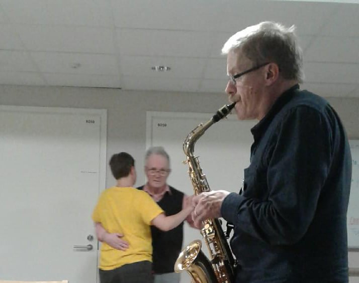 Saksofonin notkeat sävelet soivat ryhmäkoti Kalevan päiväsalissa Paloheinän yksikössä. Asukas tanssahtelee hoitajan kanssa sävelten tahdissa ja muut naputtelevat rytmiä varpaillaan tai sormenpäillään sohvalla ja seuraavat hymyillen tanssia. Hoivamuusikko, tai niin kuin Paloheinän yksikössä sanotaan, hovimuusikko Jyrki Myllylä on tänään talossa saksofoneineen.