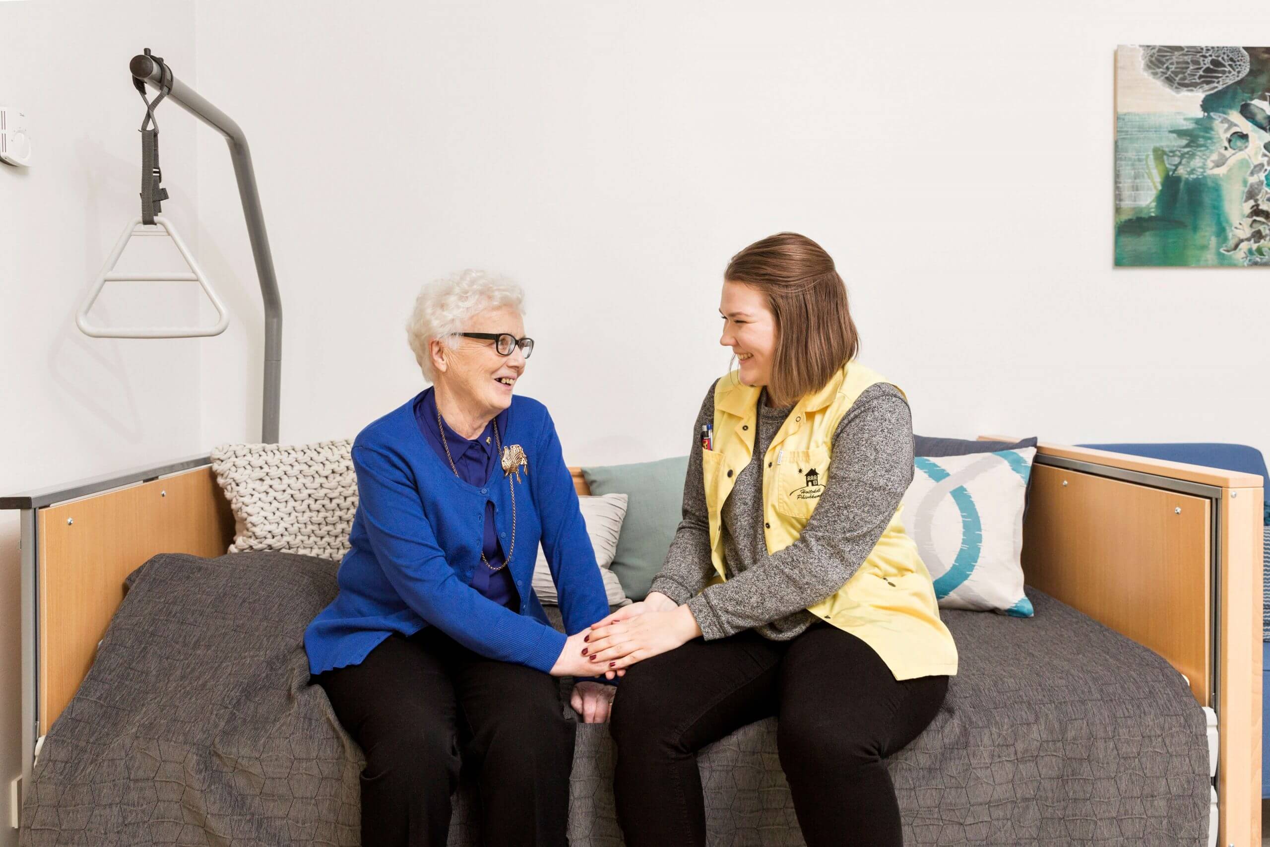 Kohtaamme jokaisen asukkaan yksilönä ja kuuntelemme aidosti. Tavoitteenamme on, että palveluasunnossa voi elää turvallista, merkityksellistä ja ilon rikastuttamaa elämää.